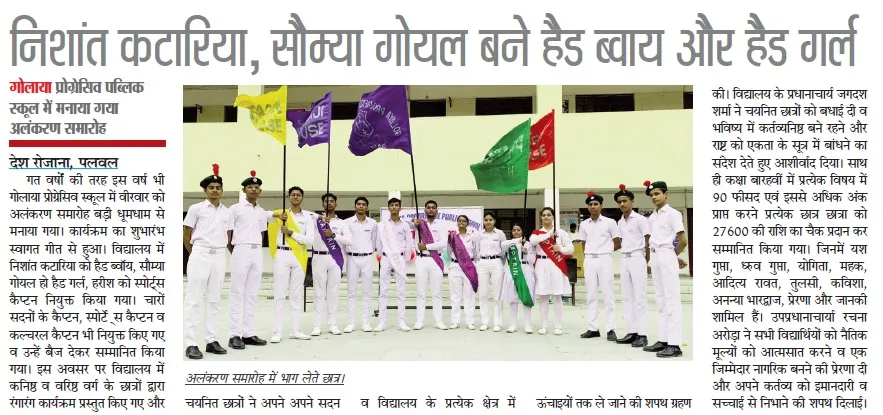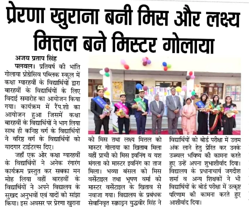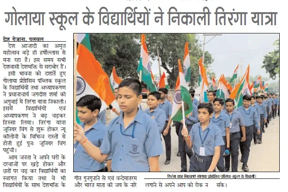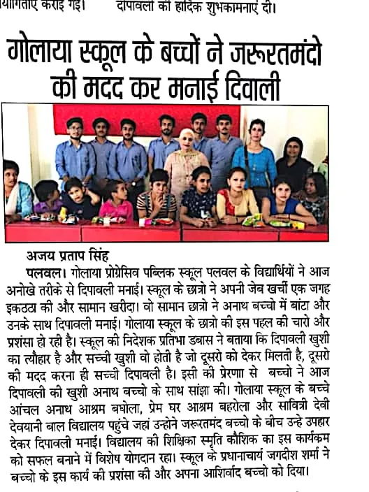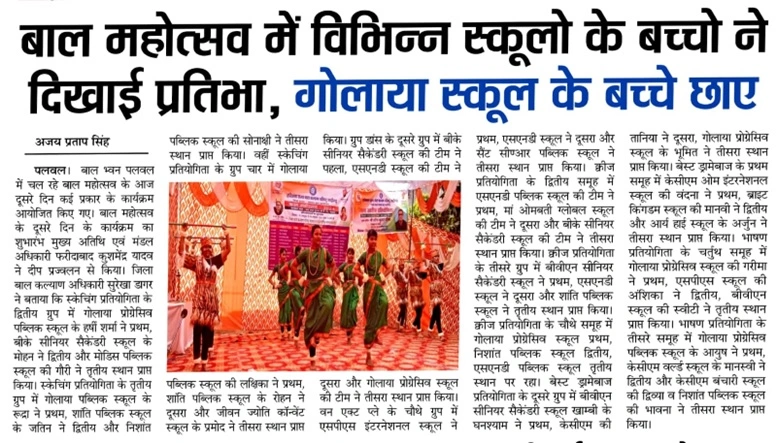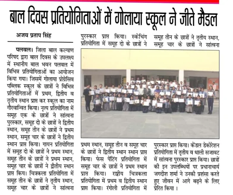 | Tuesday, 16 December 2025 | Dear Parents, Greetings! For the safety of our students, you are kindly requested not to allow your child to cross the railway line while coming to or going from school. All students must use the railway overbridge for safe passage . Your cooperation in ensuring your child’s safety is highly appreciated. Golaya Progressive Public School प्रिय अभिभावकगण, विद्यार्थियों की सुरक्षा को ध्यान में रखते हुए आपसे विनम्र अनुरोध है कि अपने बच्चों को विद्यालय आते-जाते समय रेलवे लाइन पार करने की अनुमति न दें । सभी विद्यार्थी रेलवे ओवरब्रिज का ही उपयोग करें । आपके सहयोग से ही हम बच्चों की सुरक्षा सुनिश्चित कर सकते हैं। गोलाया प्रोग्रेसिव पब्लिक स्कूल |